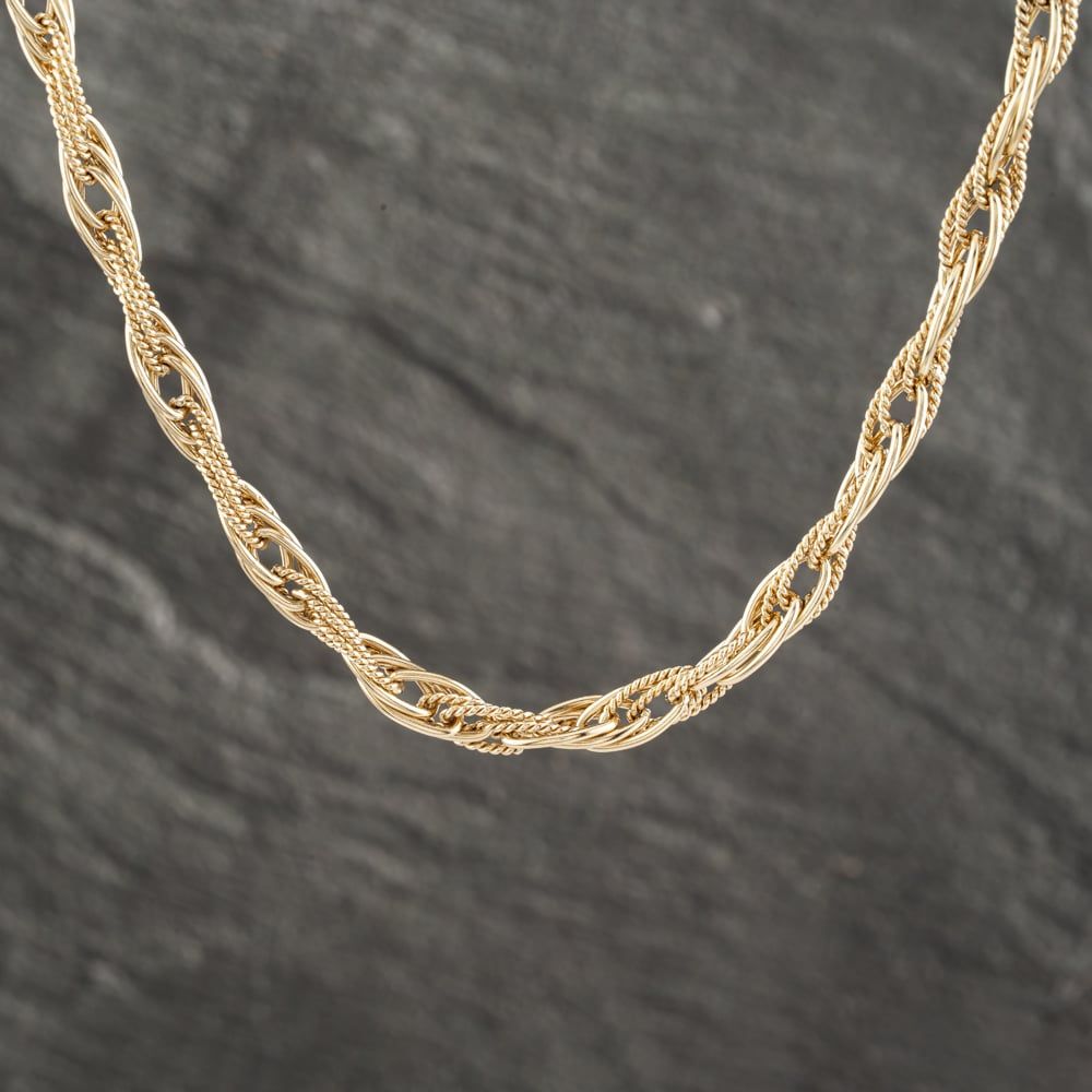 9ct Yellow Gold Rope & Plain Link 22 Inch Prince Of Wales Chain