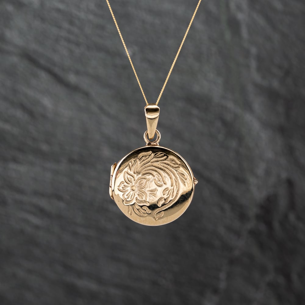 Second Hand 9ct Yellow Gold Round Engraved Locket Pendant & 18 Inch Curb Chain 43141300 Second Hand 9ct Yellow Gold Round Engraved Locket Pendant & 18 Inch Curb Chain 43141300 Second Hand 9ct Yellow Gold Round Engraved Locket Pendant & 18 Inch Curb Chain 43141300