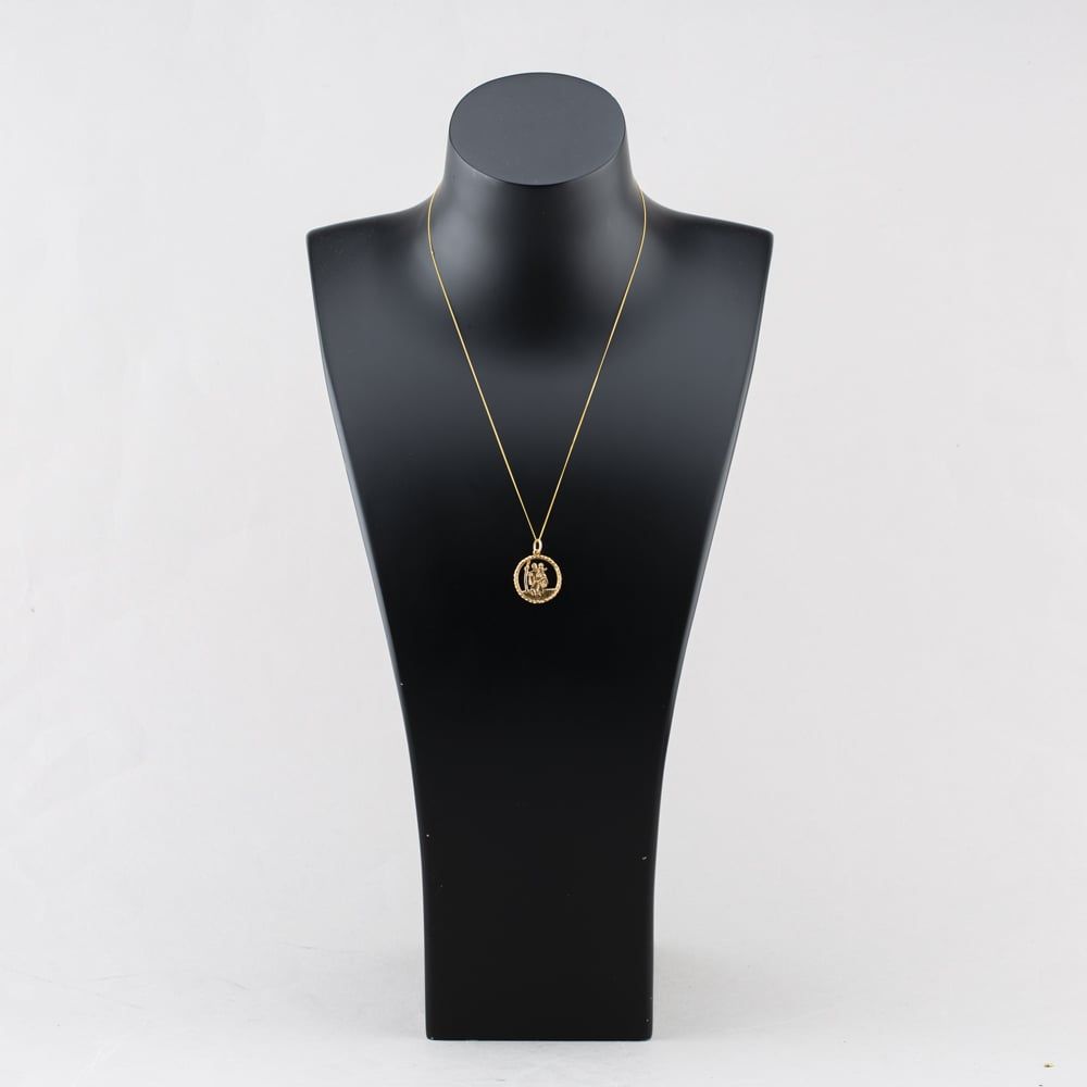 Second Hand 9ct Yellow Gold Round Openwork St Christopher Pendant & 18 Inch Curb Chain 41142975 Second Hand 9ct Yellow Gold Round Openwork St Christopher Pendant & 18 Inch Curb Chain 41142975