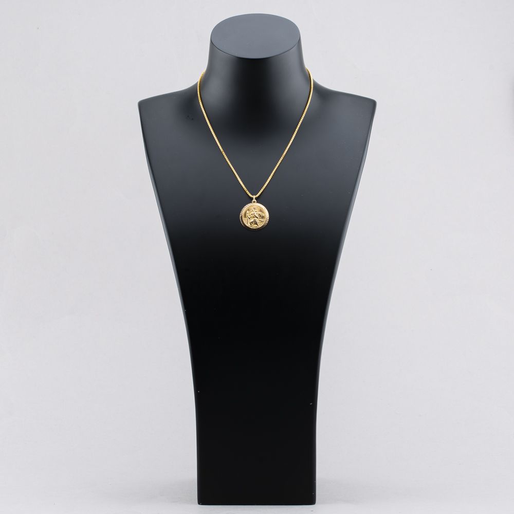 9ct Yellow Gold Round St Christopher Pendant & 16 Inch Box Chain