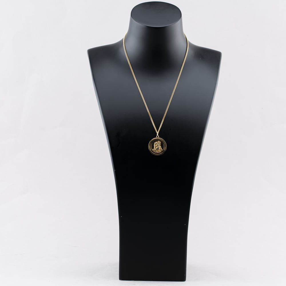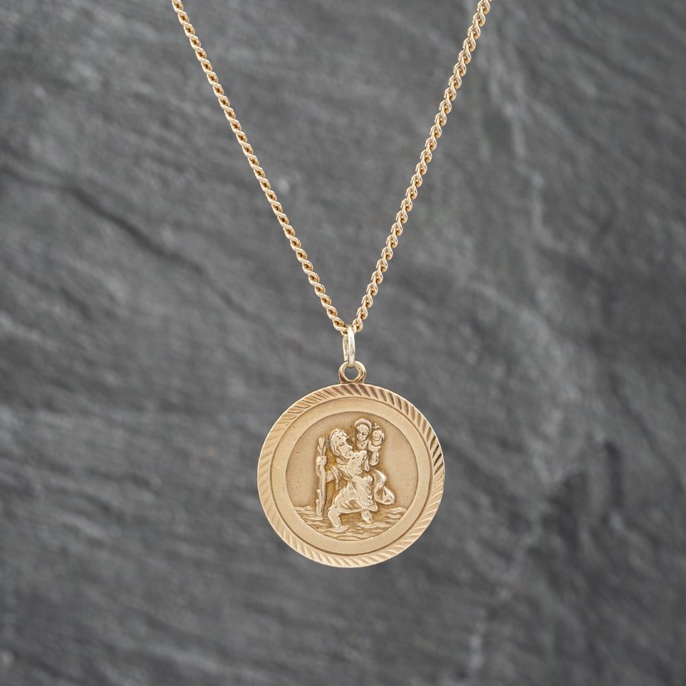 9ct Yellow Gold Round St Christopher Pendant & 18 Inch Curb Chain