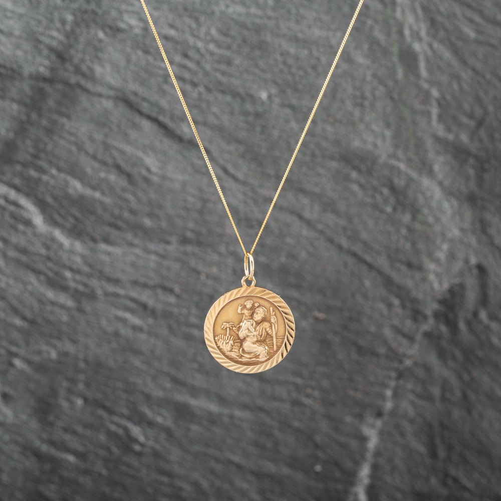 Second Hand 9ct Yellow Gold Round St Christopher Pendant & 18 Inch Curb Chain 41143067 Second Hand 9ct Yellow Gold Round St Christopher Pendant & 18 Inch Curb Chain 41143067