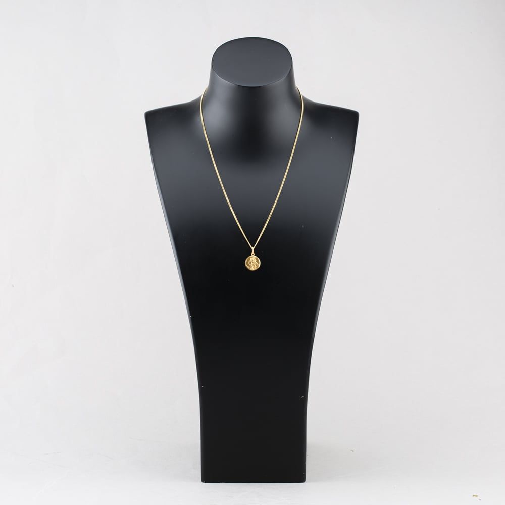 9ct Yellow Gold Round St Christopher Pendant & 18 Inch Curb Chain