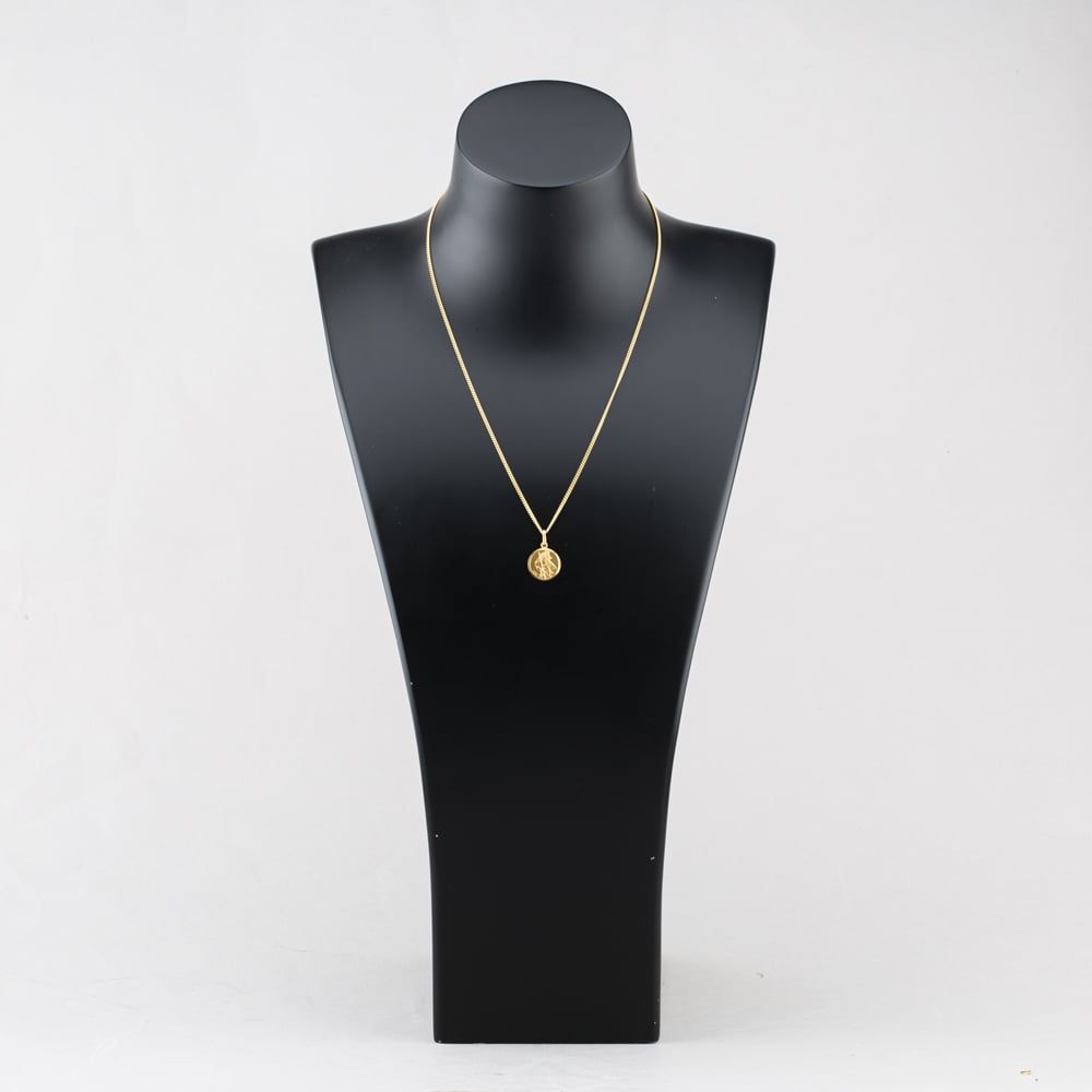 9ct Yellow Gold Round St Christopher Pendant & 18 Inch Curb Chain