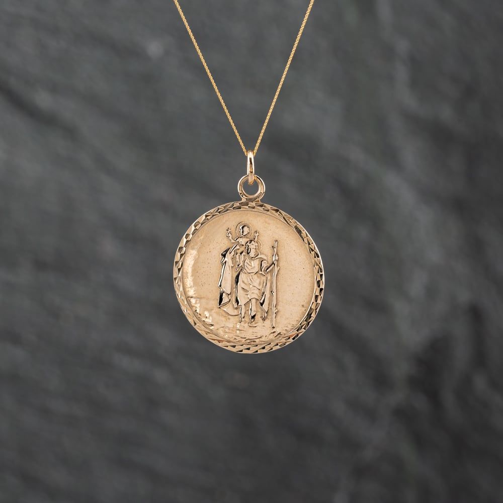 Second Hand 9ct Yellow Gold Round St Christopher Pendant & 18 Inch Curb Chain 43141285 Second Hand 9ct Yellow Gold Round St Christopher Pendant & 18 Inch Curb Chain 43141285