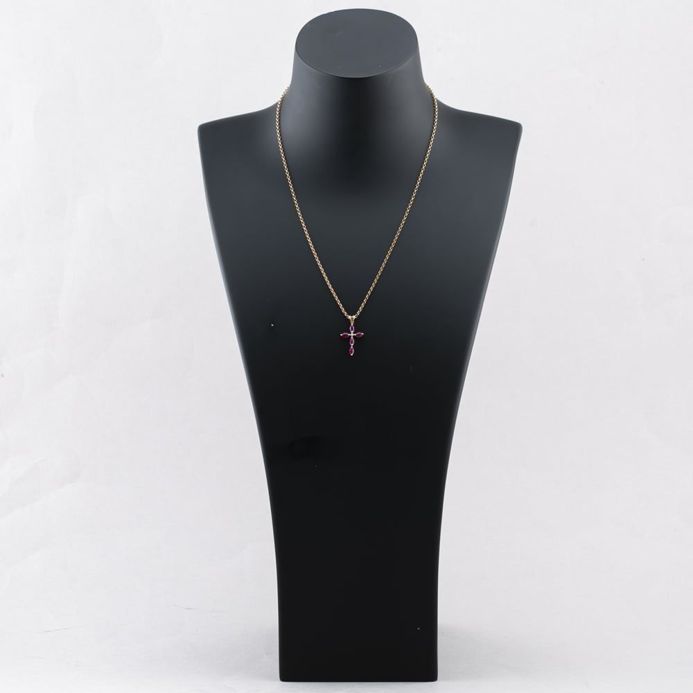 Second Hand 9ct Yellow Gold Ruby & 0.01ct Diamond Pendant & 18 Inch Belcher Chain 41142609