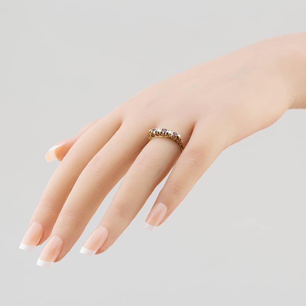 9ct Yellow Gold Ruby & Cubic Zirconia Half Eternity Ring