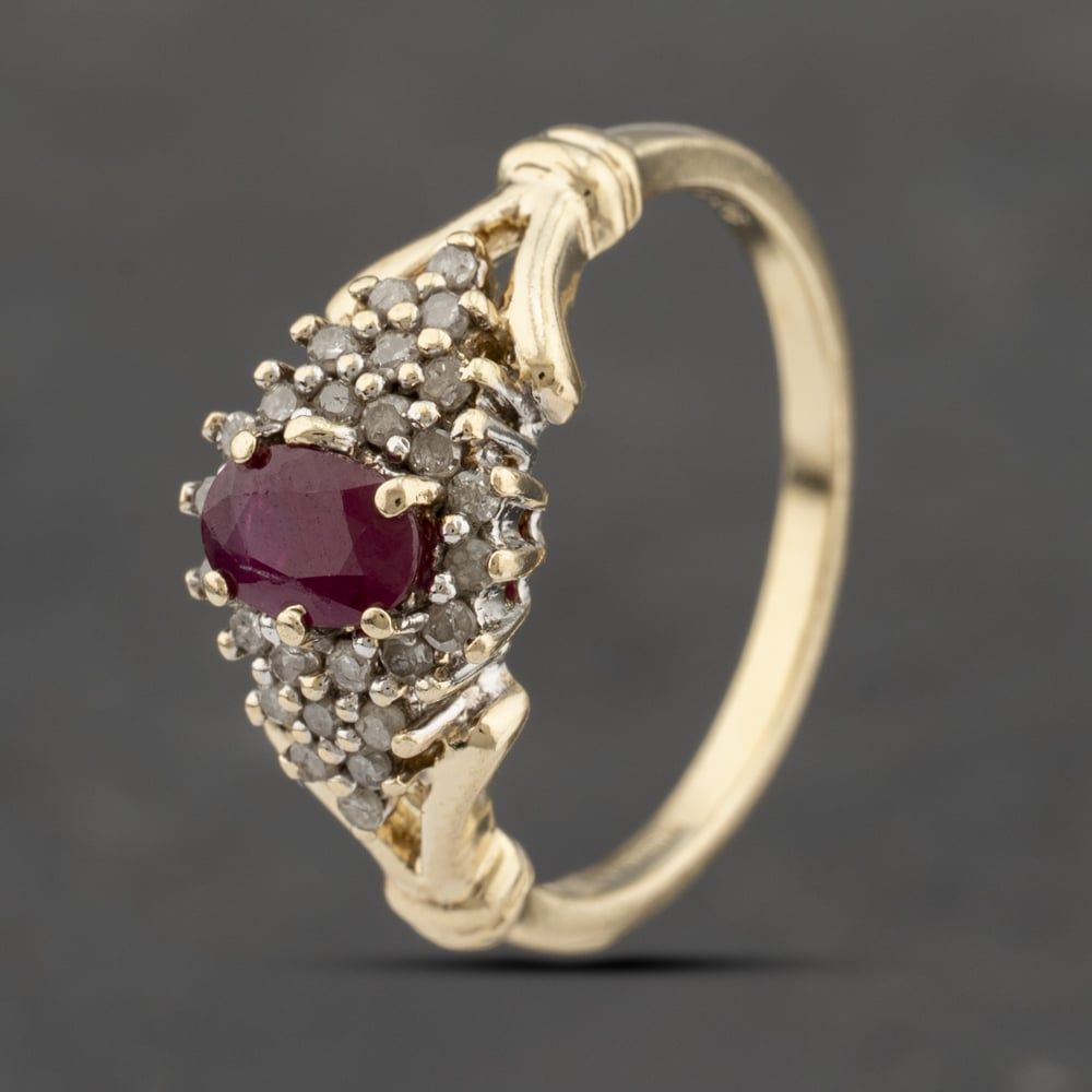 Second Hand 9ct Yellow Gold Ruby & Diamond Cluster Ring 41383424