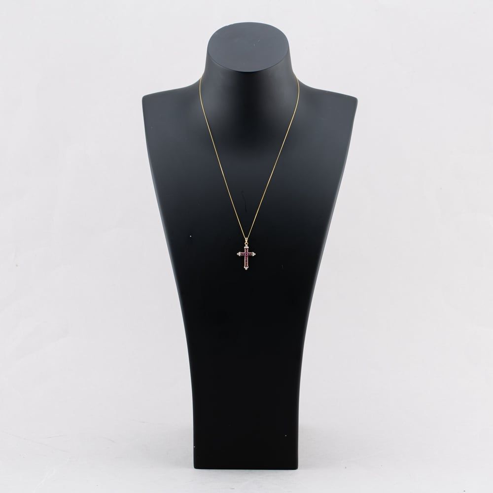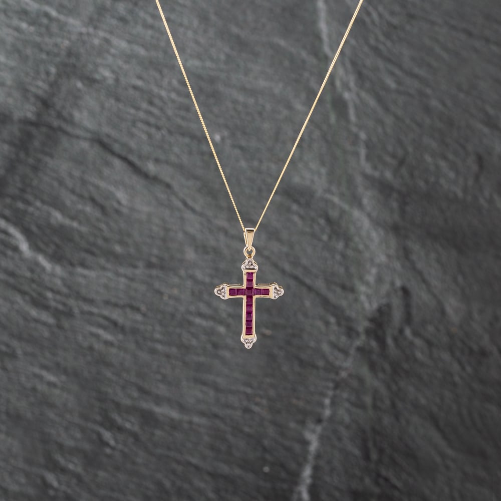 Second Hand 9ct Yellow Gold Ruby & Diamond Cross Pendant & 18 Inch Curb Chain 41142903 Second Hand 9ct Yellow Gold Ruby & Diamond Cross Pendant & 18 Inch Curb Chain 41142903