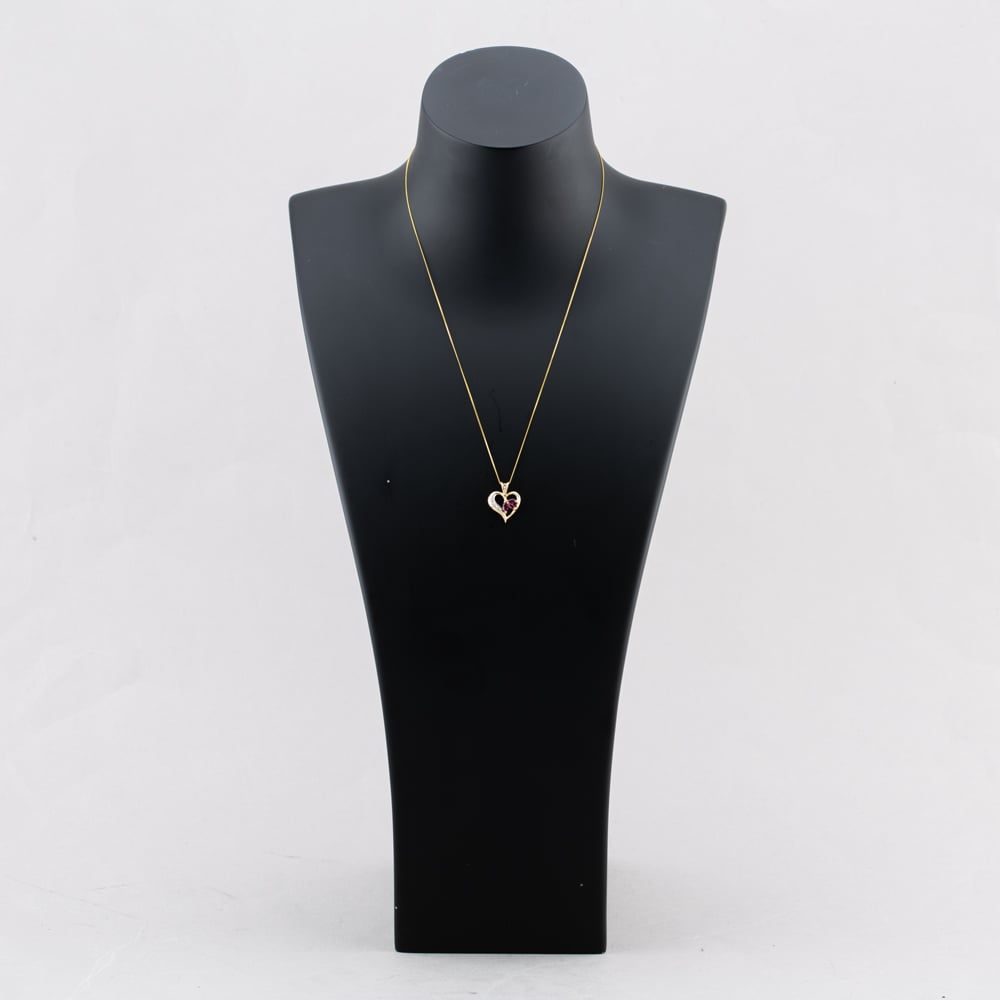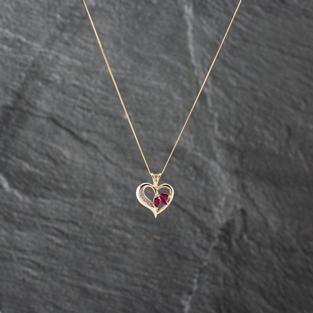 Second Hand 9ct Yellow Gold Ruby & Diamond Openwork Heart Pendant & 18 Inch Curb Chain 41142916 Second Hand 9ct Yellow Gold Ruby & Diamond Openwork Heart Pendant & 18 Inch Curb Chain 41142916