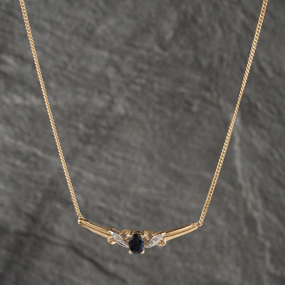 9ct Yellow Gold Sapphire & 0.01ct Diamond Oval Xox Landscape Bar Pendant & 18 Inch Curb Chain