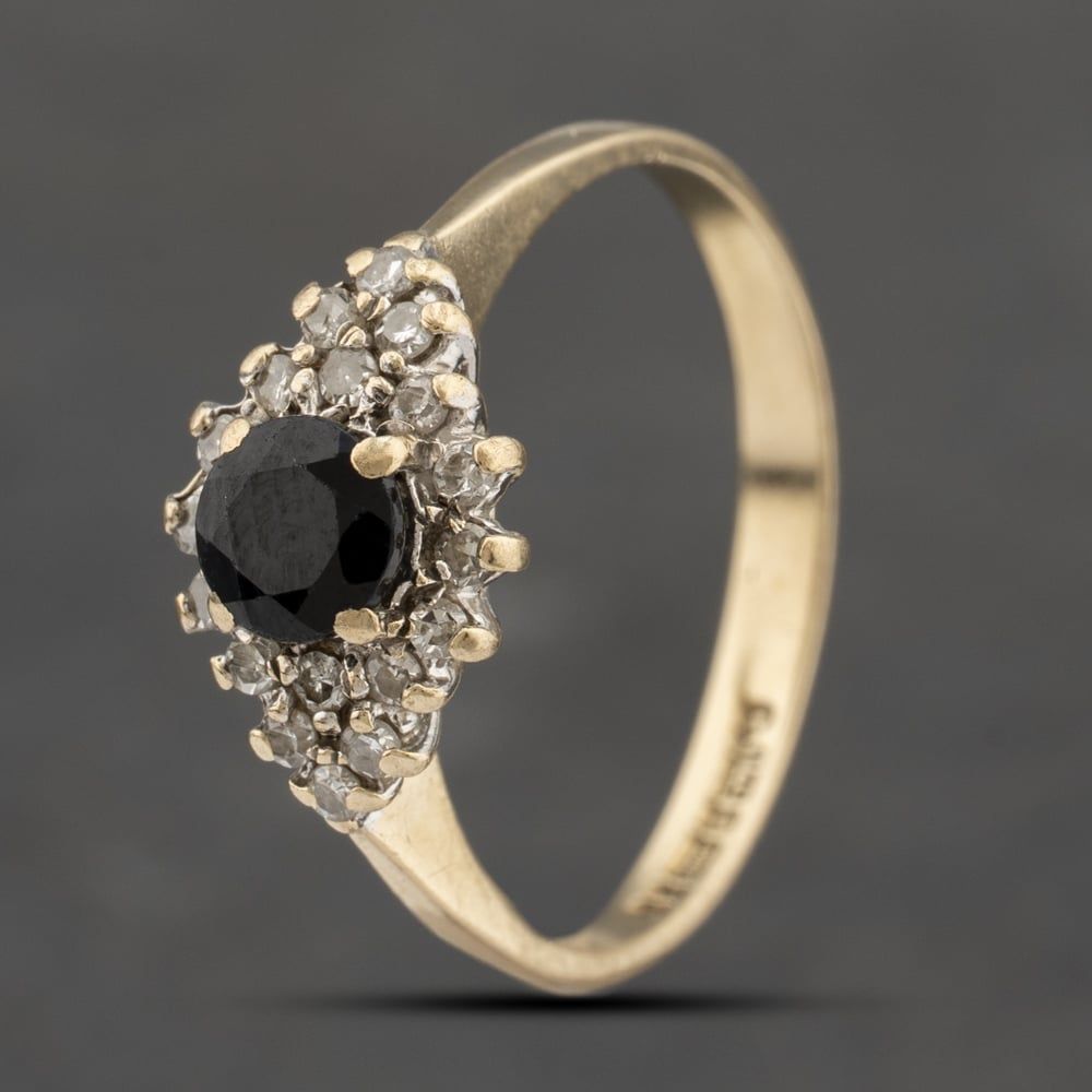 9ct Yellow Gold Sapphire & Cubic Zirconia Cluster Ring