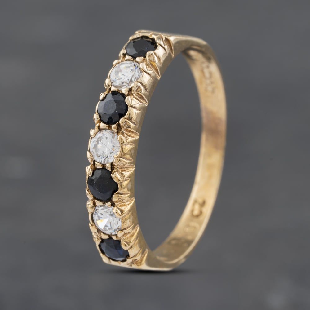9ct Yellow Gold Sapphire & Cubic Zirconia Half Eternity Ring