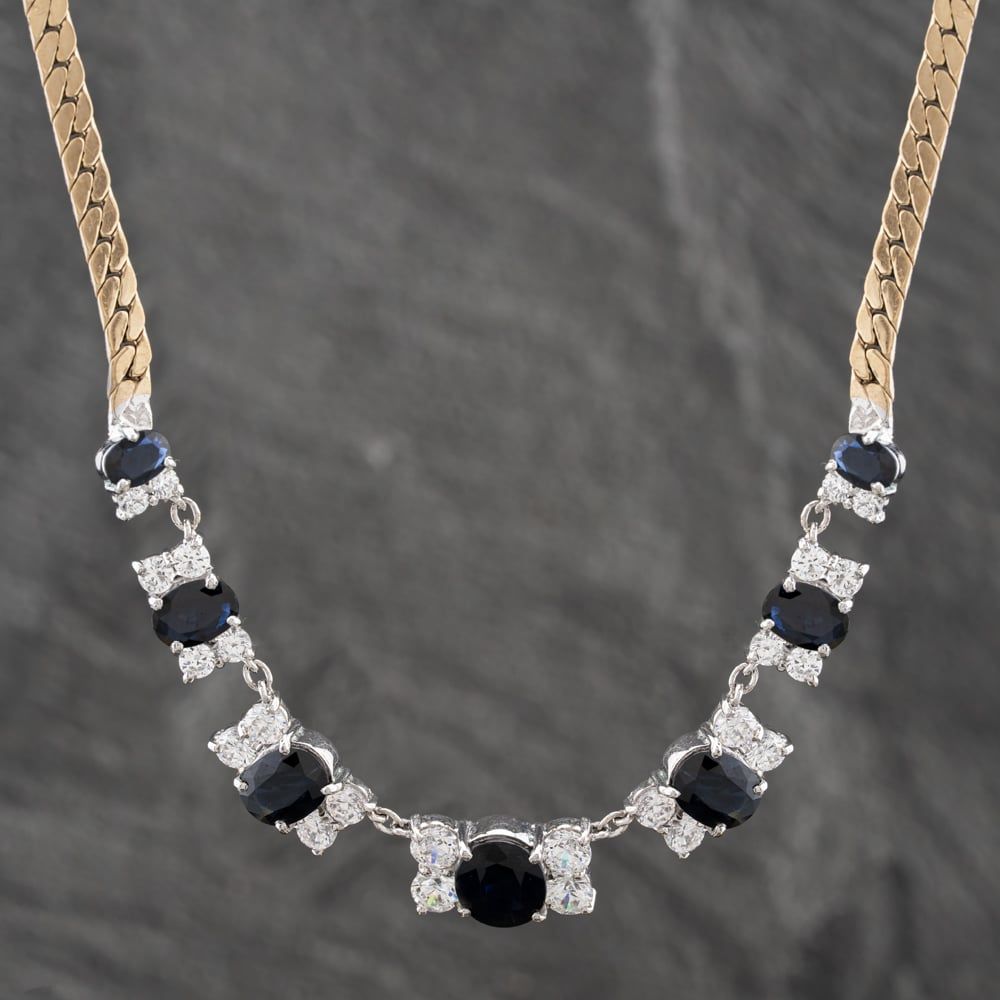 9ct Yellow Gold Sapphire & Cubic Zirconia Set 18 Inch Curb Chain