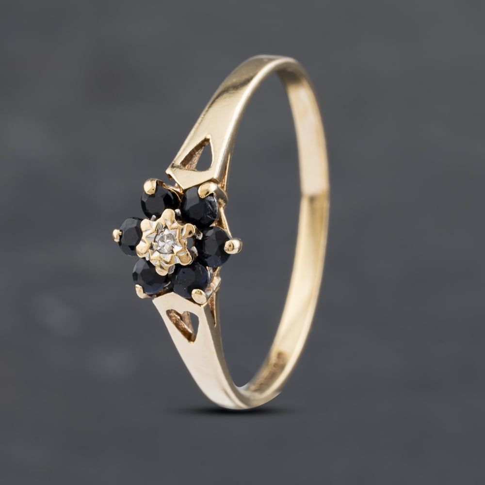 9ct Yellow Gold Sapphire & Diamond Flower Cluster Ring