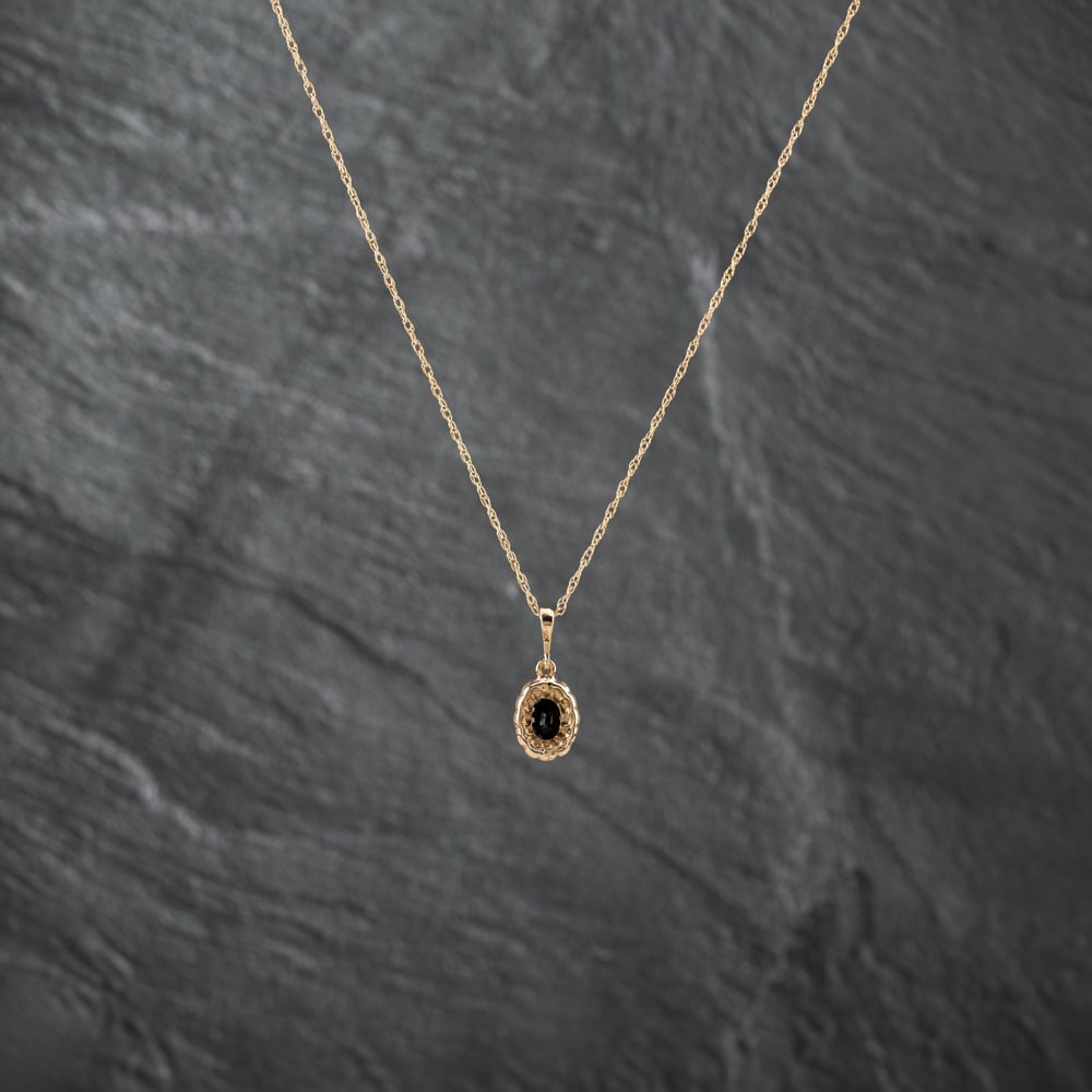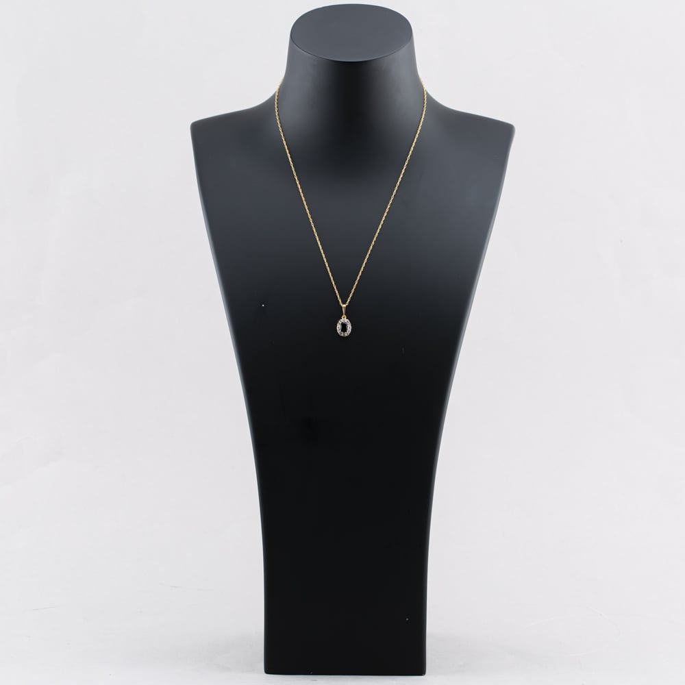 Second Hand 9ct Yellow Gold Sapphire & Diamond Oval Cluster Pendant & 18 Inch Prince Of Wales Chain 41142723 Second Hand 9ct Yellow Gold Sapphire & Diamond Oval Cluster Pendant & 18 Inch Prince Of Wales Chain 41142723