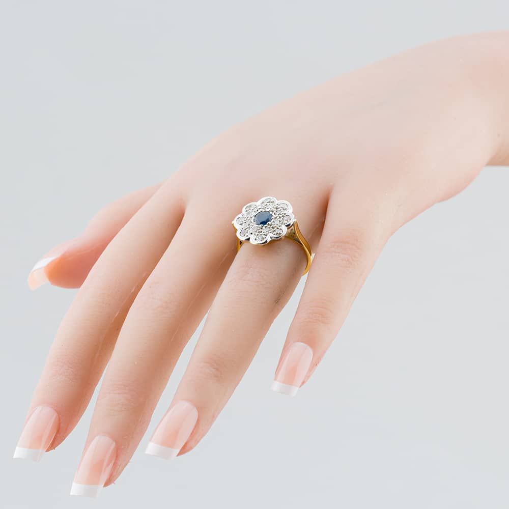 <a href="https://www.thbaker.co.uk/stores/"><b>Click here to find your <font color="6d1a42">nearest store</font></b></a>Second Handhttps://www.thbaker.co.uk/media/catalog/product/4/1/41-48-1532_model_01.jpg5056819114228condition:Yesdisc_no_stock:NoYesNoSecond Hand41481532LadiesT H Baker Packaging12 Month WarrantyNoRing4.8gRCluster9ct Yellow GoldGoldSapphireBlue{"name":"v12_finance","text":"Or from \u00a315 per month","imageUrl":"https:\/\/www.thbaker.co.uk\/media\/nosto\/v12-finance.png"}41481532Second Hand 9ct Yellow Gold Sapphire & Diamond Pave Flower Cluster Ring41-48-15322024-08-03 00:00:000[{"path":"\/Jewellery\/Gemstone Jewellery","url":"\/gemstone-jewellery\/"},{"path":"\/Jewellery","url":"\/jewellery\/"},{"path":"\/Jewellery\/Rings","url":"\/rings\/"},{"path":"\/Jewellery\/Rings\/Gold Rings","url":"\/gold-rings\/"},{"path":"\/Jewellery\/Gemstone Jewellery\/Sapphire Jewellery","url":"\/sapphire-jewellery\/"},{"path":"\/Jewellery\/Rings\/Gemstone Rings","url":"\/gemstone-rings\/"},{"path":"\/Second Hand Collection","url":"\/second-hand\/"},{"path":"\/Second Hand Collection\/Second Hand Jewellery","url":"\/second-hand-jewellery\/"},{"path":"\/Second Hand Collection\/Second Hand Rings","url":"\/second-hand-rings\/"},{"path":"\/Jewellery\/Gold Jewellery","url":"\/gold-jewellery\/"},{"path":"\/Second Hand Collection\/Second Hand Jewellery\/Second Hand Yellow Gold","url":"\/second-hand-yellow-gold-jewellery\/"},{"path":"\/Second Hand Collection\/Second Hand Rings\/Second Hand Cluster Rings","url":"\/second-hand-cluster-rings\/"},{"path":"\/Second Hand Collection\/Second Hand Ladies","url":"\/second-hand-ladies-collection\/"},{"path":"\/Second Hand Collection\/Second Hand Gemstones","url":"\/second-hand-gemstone-jewellery\/"},{"path":"\/Second Hand Collection\/Second Hand Rings\/Second Hand Gold Rings","url":"\/second-hand-gold-rings\/"},{"path":"\/Second Hand Collection\/Second Hand Rings\/Second Hand Yellow Gold Rings","url":"\/second-hand-yellow-gold-rings\/"},{"path":"\/Jewellery\/Ladies Jewellery","url":"\/ladies-jewellery\/"},{"path":"\/Jewellery\/Gemstone Jewellery\/Sapphire Jewellery\/Sapphire Rings","url":"\/sapphire-rings\/"},{"path":"\/Jewellery\/Gold Jewellery\/Yellow Gold Rings","url":"\/yellow-gold-rings\/"},{"path":"\/Free Gift Card - When you spend \u00a3500+","url":"\/free-gift-card\/"},{"path":"\/Second Hand Collection\/Second Hand Gold","url":"\/second-hand-gold\/"},{"path":"\/Second Hand Collection\/Second Hand Gemstones\/Second Hand Sapphire","url":"\/second-hand-sapphire-jewellery\/"},{"path":"\/Second Hand Collection\/Second Hand Jewellery\/Second Hand 9ct","url":"\/second-hand-9ct-jewellery\/"},{"path":"\/Second Hand Collection\/Second Hand Gemstones\/Second Hand Sapphire\/Second Hand Sapphire Rings","url":"\/second-hand-sapphire-rings\/"},{"path":"\/Second Hand Collection\/Second Hand Rings\/Second Hand Ladies Rings","url":"\/second-hand-ladies-rings\/"},{"path":"\/Free Gift With Purchase Products","url":"\/free-gift-with-purchase-products\/"},{"path":"\/\u00a350 Gift Card (\u00a3500-\u00a3999.99)","url":"\/50-gift-card-500-999-99\/"}]2024-08-03
