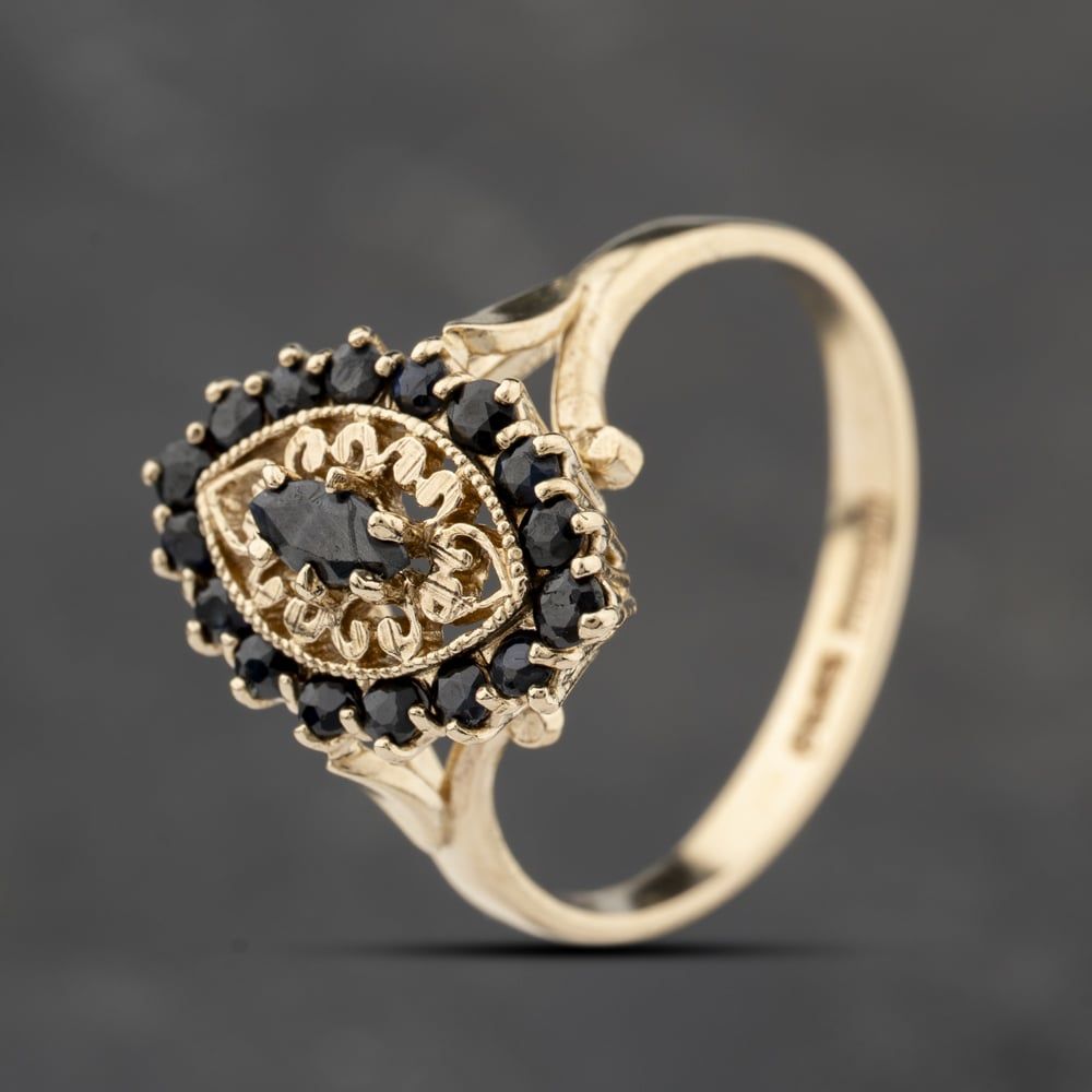 9ct Yellow Gold Sapphire Marquise Shape Cluster Ring