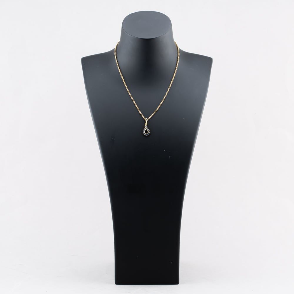 9ct Yellow Gold Sapphire Openwork Oval Dropper Pendant & 16 Inch Belcher Chain