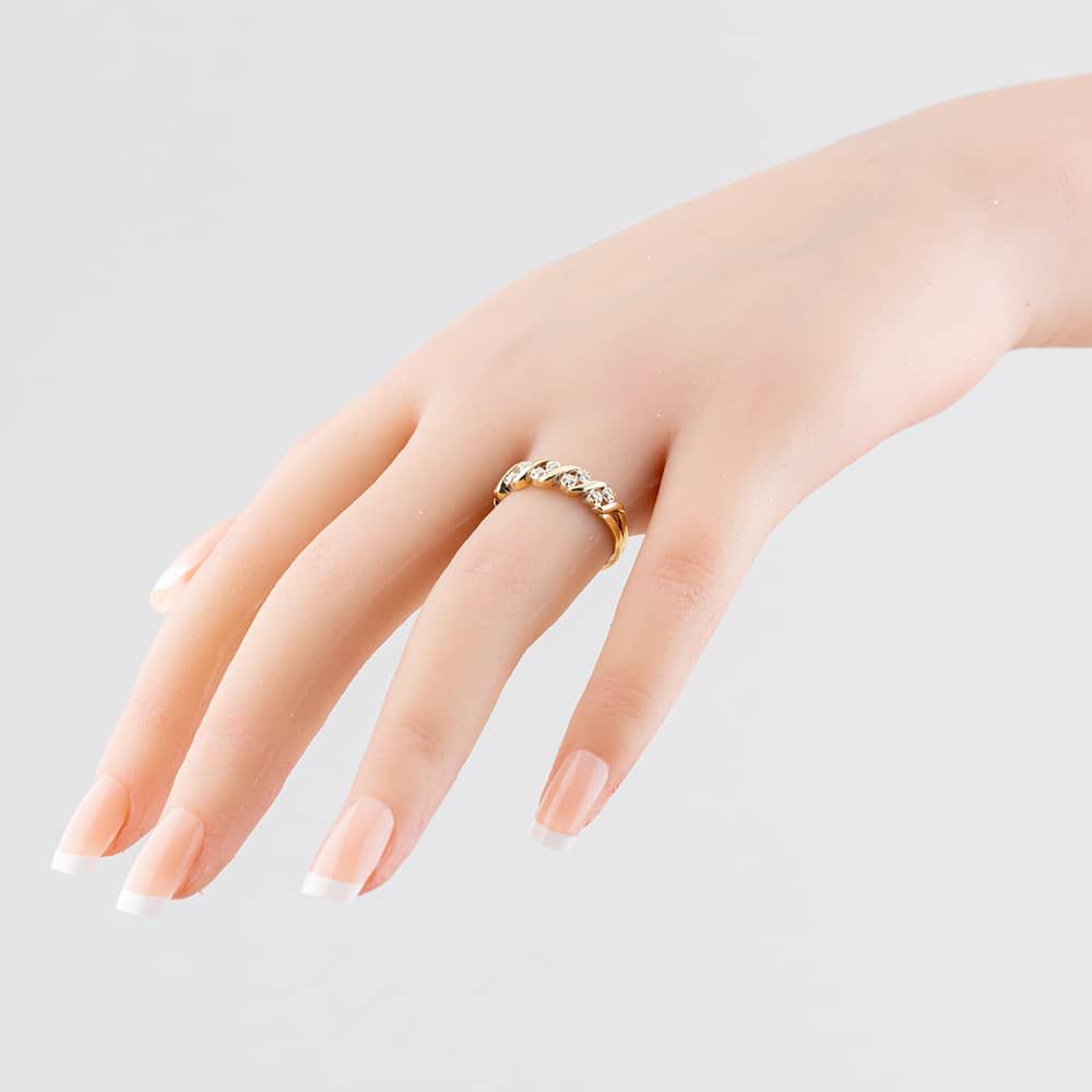 9ct Yellow Gold Single Cut Diamond 2 Row Half Eternity Ring