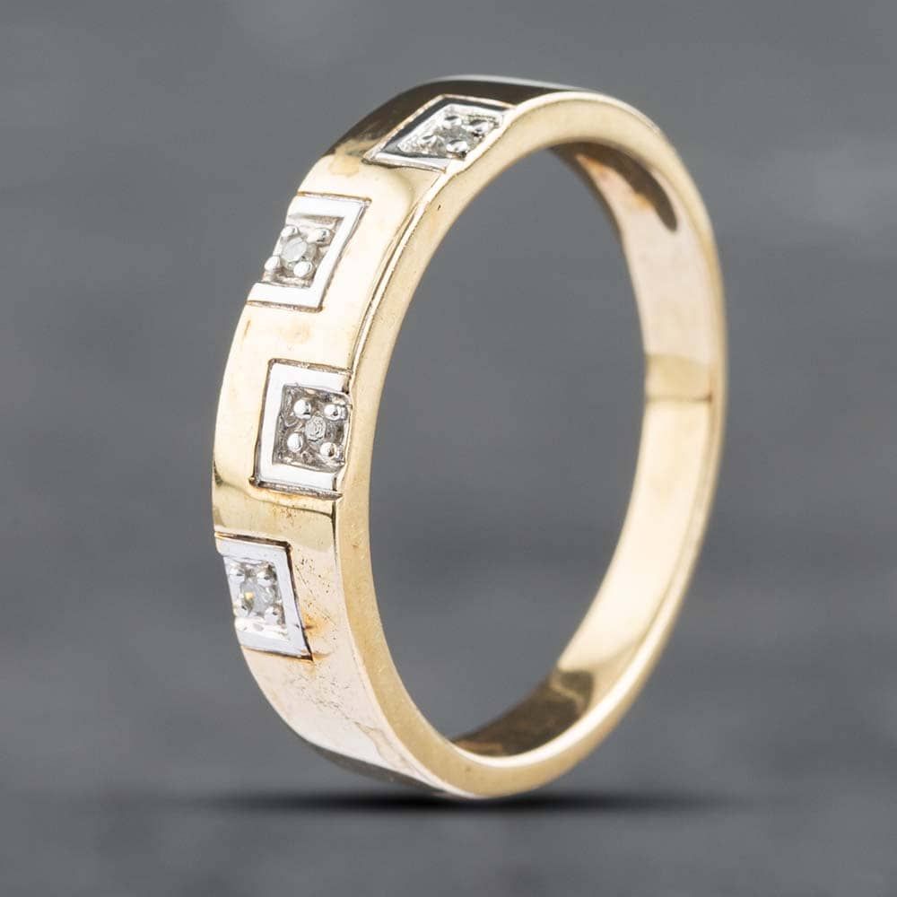 Second Hand9ct Yellow Gold Single Cut Diamond Greek Key Ring 41381492