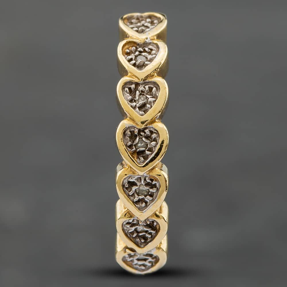 Second Hand9ct Yellow Gold Single Cut Diamond Heart Shaped Half Eternity Seven Stone Ring 41381434