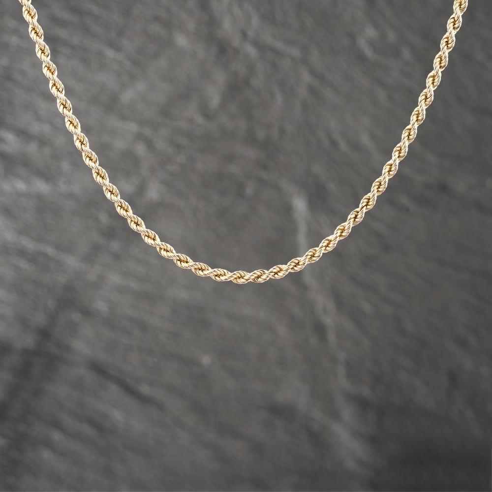 9ct Yellow Gold Solid 15 Inch Rope Chain