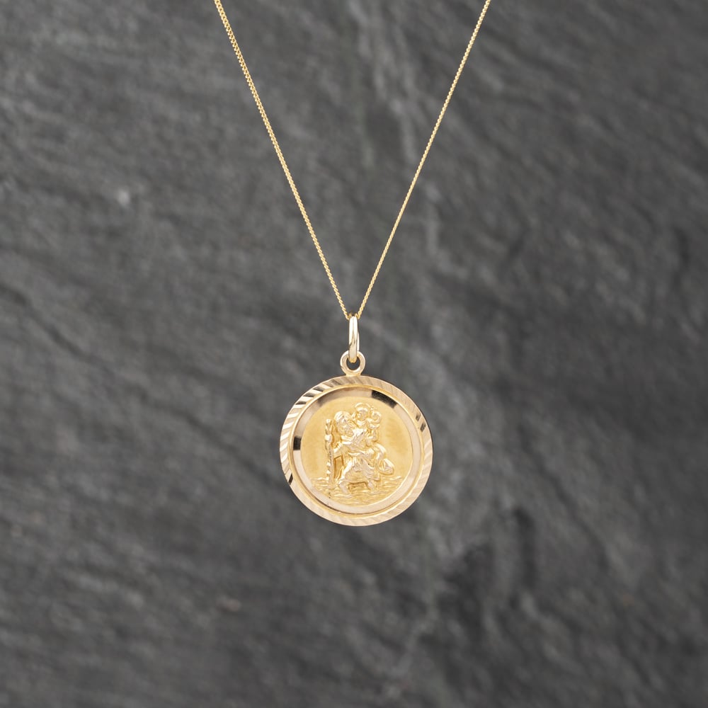 Second Hand 9ct Yellow Gold St Christopher Pendant & 18 Inch Curb Chain 41142494 Second Hand 9ct Yellow Gold St Christopher Pendant & 18 Inch Curb Chain 41142494