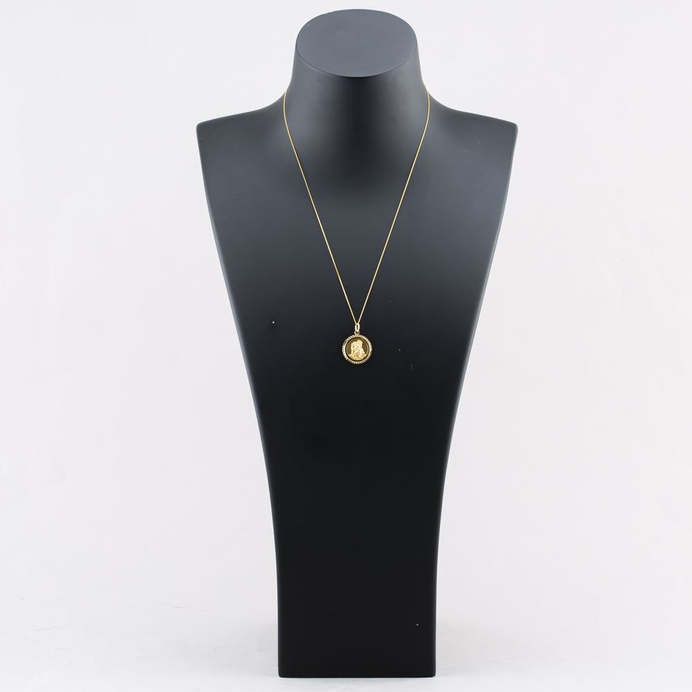 9ct Yellow Gold St Christopher Pendant & 18 Inch Curb Chain