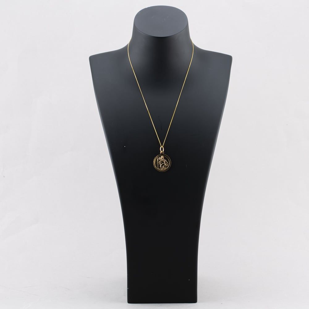 9ct Yellow Gold St Christopher Pendant & 18 Inch Curb Chain