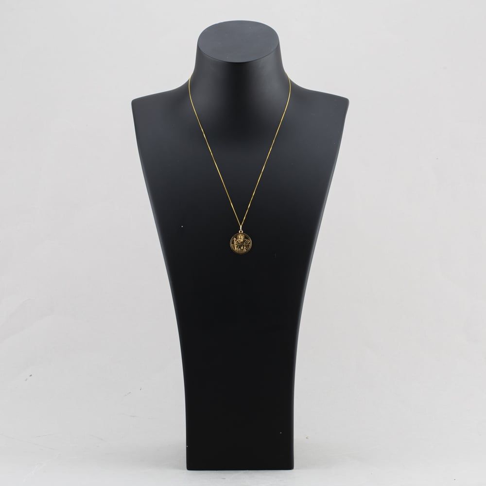 9ct Yellow Gold St Christopher Pendant & 18 Inch Curb Chain