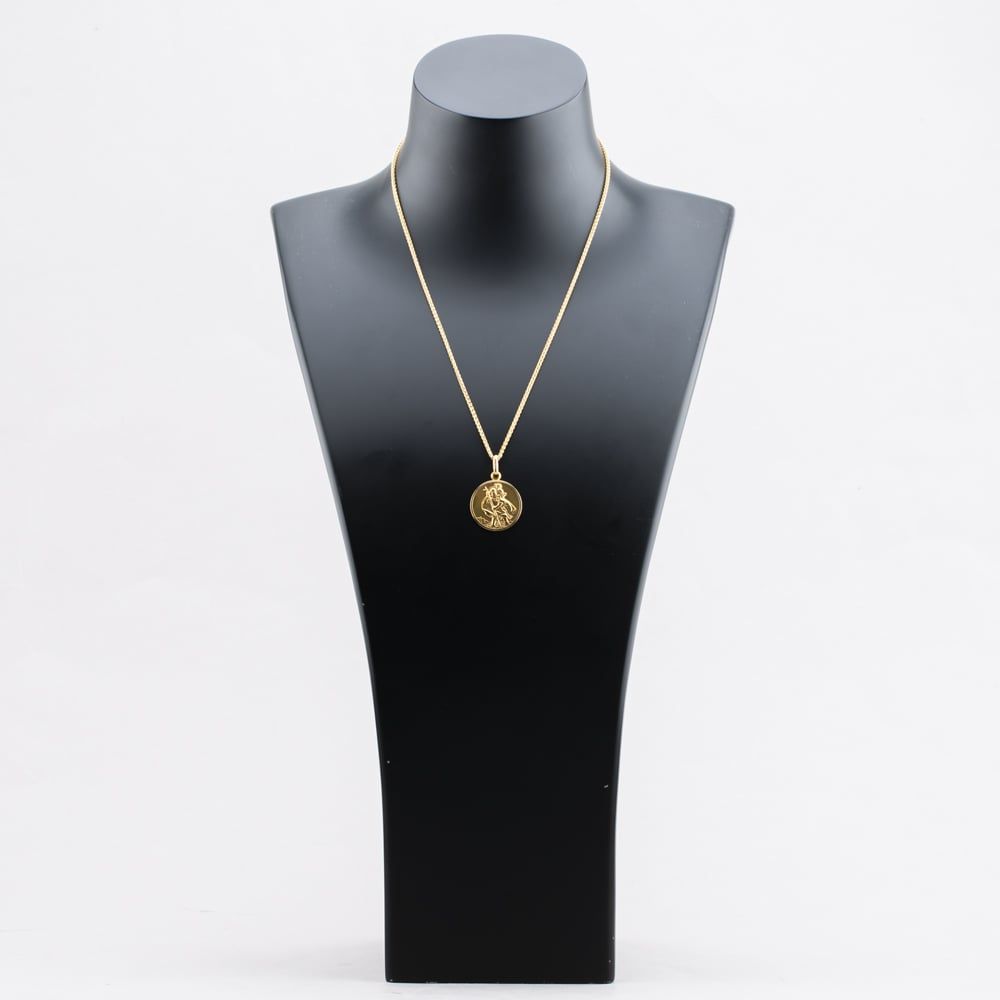 9ct Yellow Gold St Christopher Pendant & 18 Inch Foxtail Chain