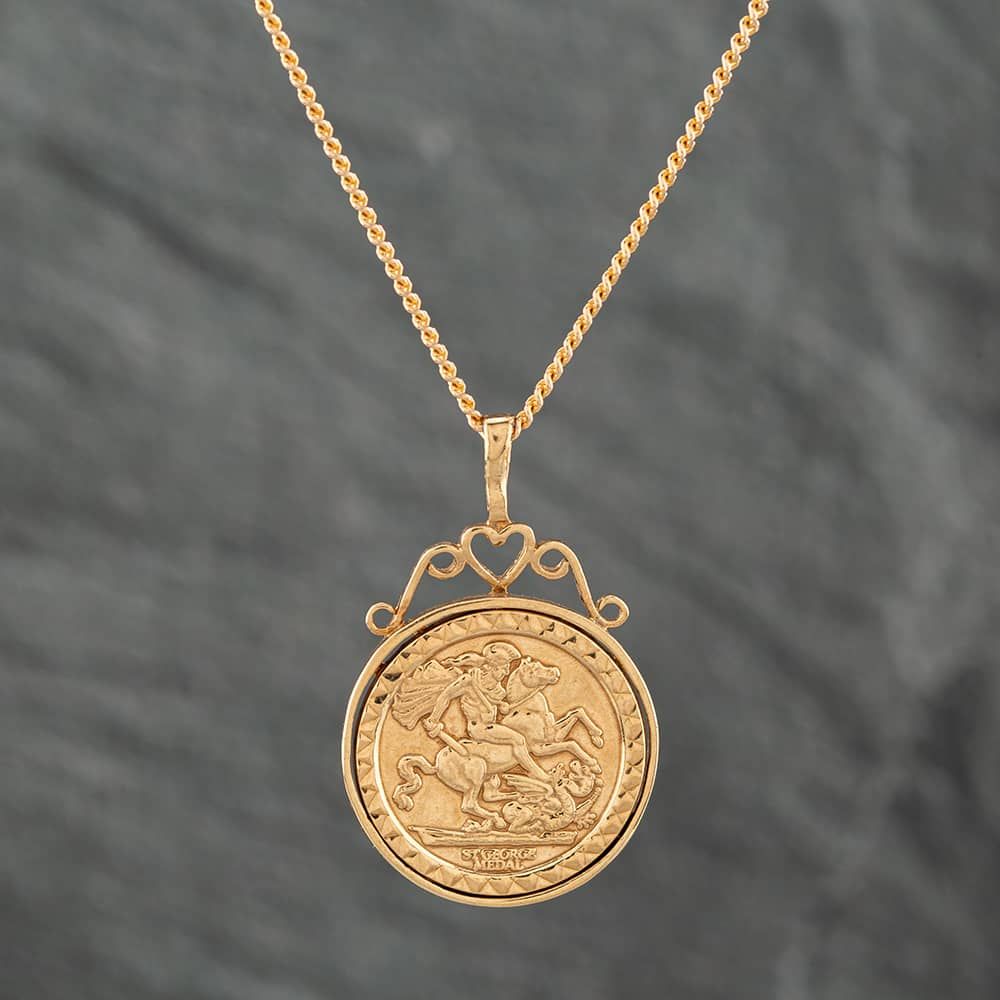 9ct Yellow Gold St George Pendant & 21 Inch Curb Chain