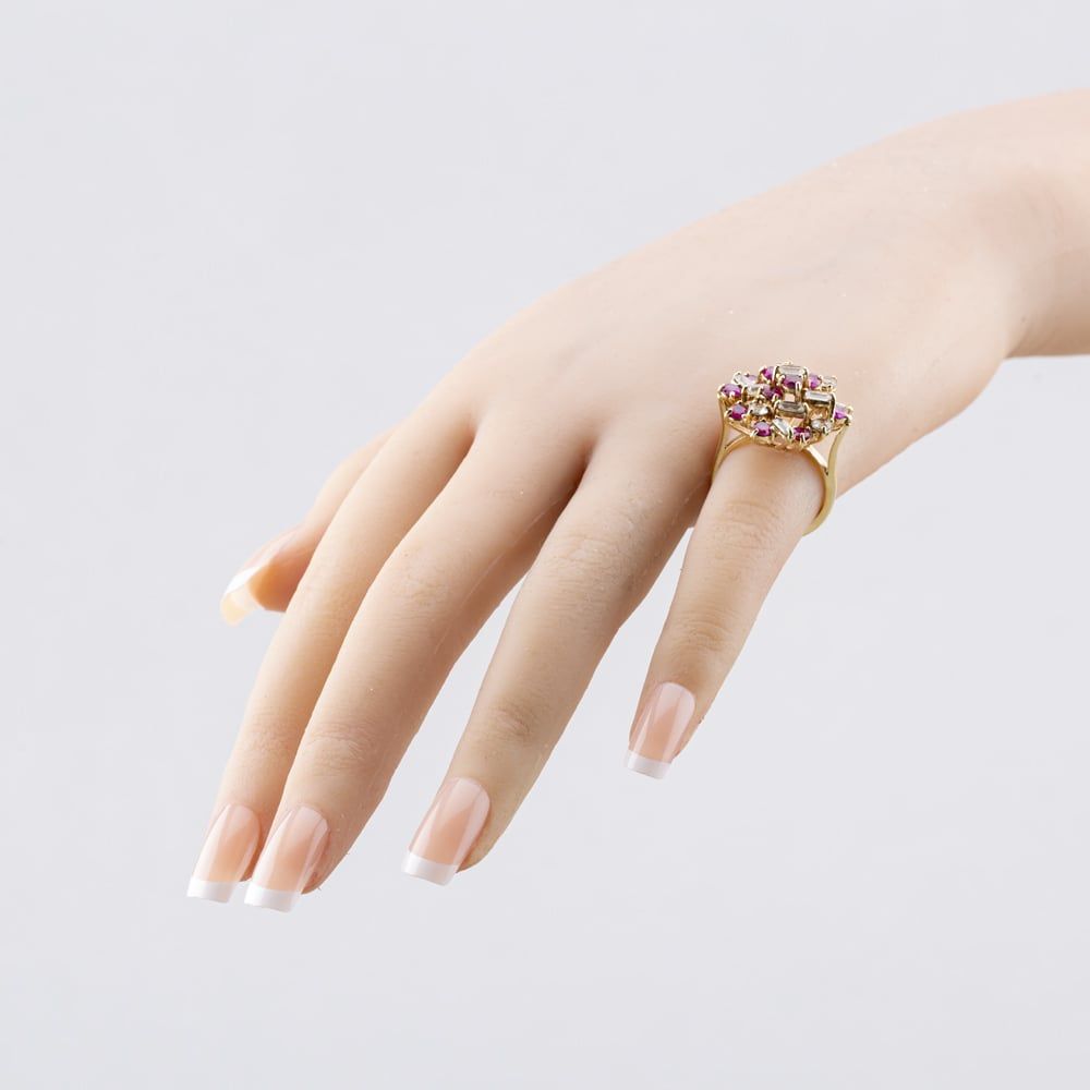 9ct Yellow Gold Synthetic Rubies & Synthetic White Spinels Cluster Ring