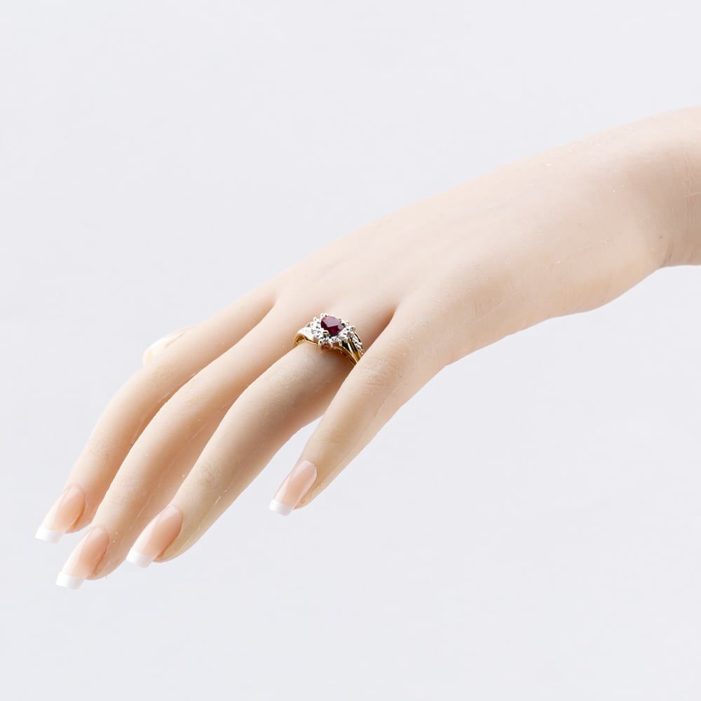 Second Hand 9ct Yellow Gold Synthetic Ruby & Diamond Heart Cluster Ring 41383843 Second Hand 9ct Yellow Gold Synthetic Ruby & Diamond Heart Cluster Ring 41383843