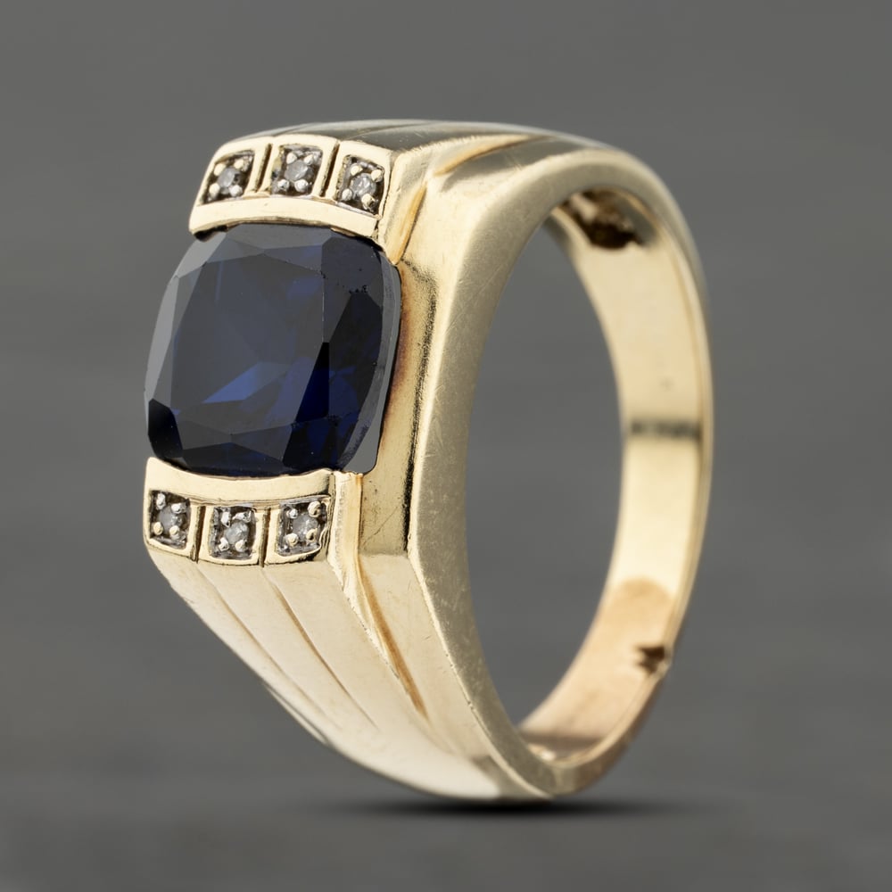 9ct Yellow Gold Synthetic Sapphire & Diamond Ring
