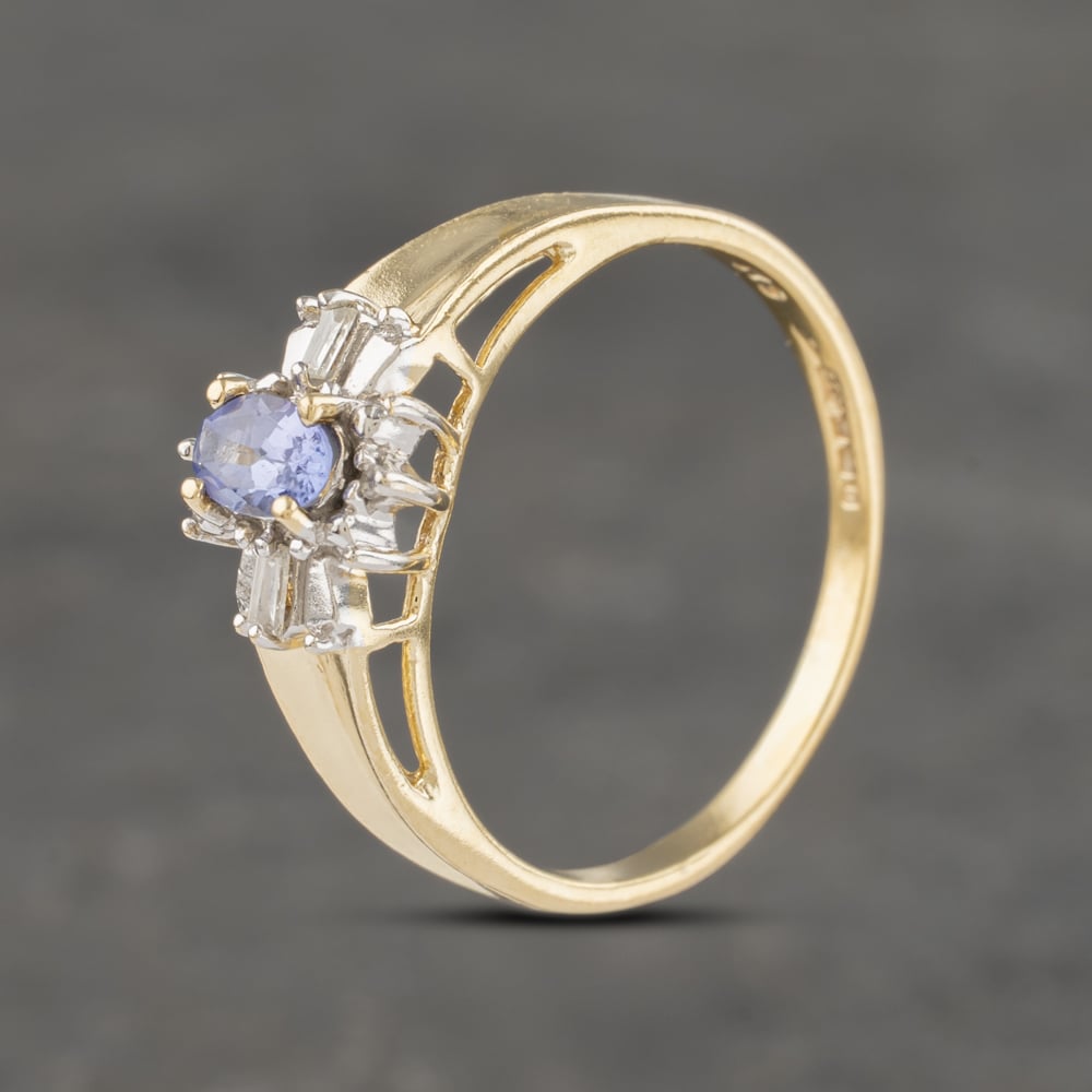 Second Hand 9ct Yellow Gold Tanzanite & 0.05ct Diamond Cluster Ring 41383010 Second Hand 9ct Yellow Gold Tanzanite & 0.05ct Diamond Cluster Ring 41383010