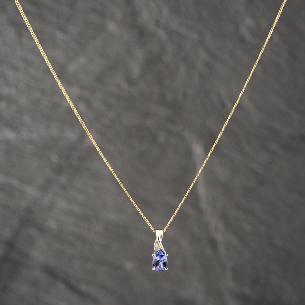 Second Hand 9ct Yellow Gold Tanzanite & 0.15ct Diamond Pendant & 16 Inch Curb Chain 41142610 Second Hand 9ct Yellow Gold Tanzanite & 0.15ct Diamond Pendant & 16 Inch Curb Chain 41142610