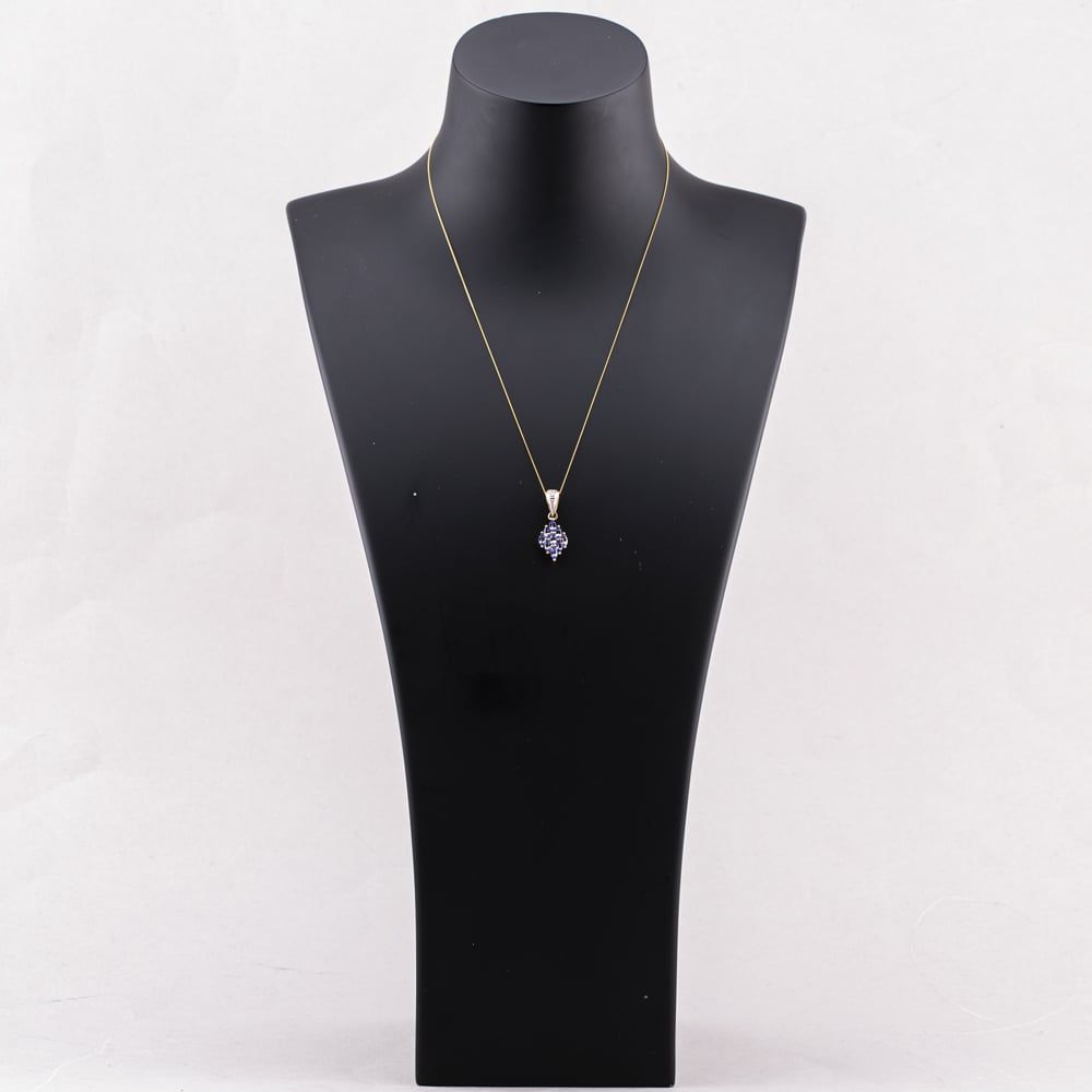 Second Hand 9ct Yellow Gold Tanzanite & Diamond Marquise Shaped Cluster Pendant & 18 Inch Curb Chain 41142823 Second Hand 9ct Yellow Gold Tanzanite & Diamond Marquise Shaped Cluster Pendant & 18 Inch Curb Chain 41142823