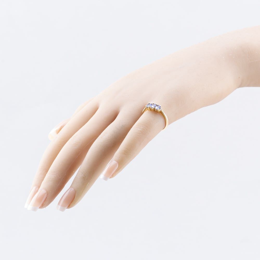 Second Hand 9ct Yellow Gold Tanzanite & Diamond Three Stone Ring 41383661 Second Hand 9ct Yellow Gold Tanzanite & Diamond Three Stone Ring 41383661
