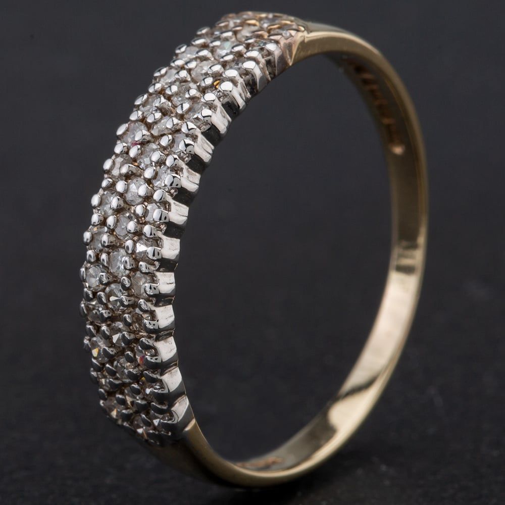 9ct Yellow Gold 3 Row Pave Style Diamond Set Dress Ring Approximate Diamond Weight 0.25ct