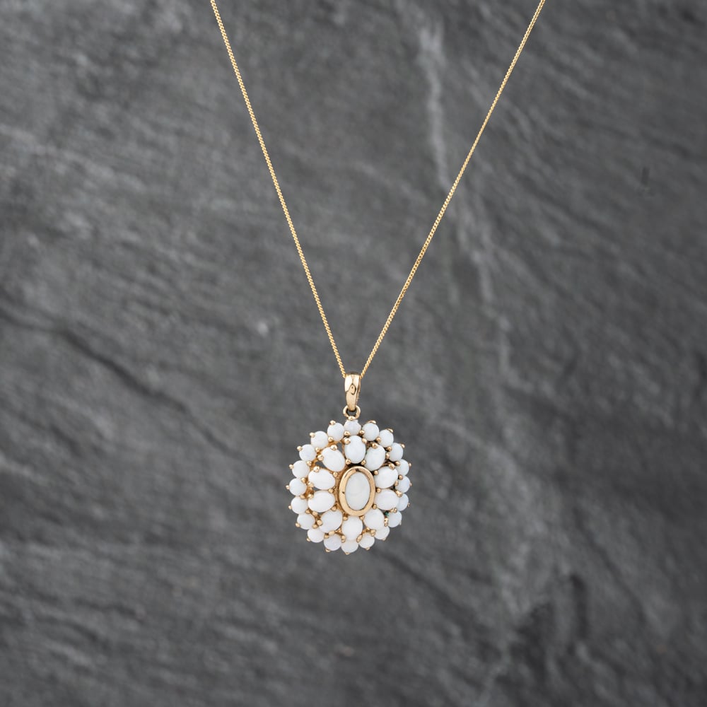 Second Hand 9ct Yellow Gold Three Tier Opal Pendant & 18 Inch Curb Chain 41142828 Second Hand 9ct Yellow Gold Three Tier Opal Pendant & 18 Inch Curb Chain 41142828