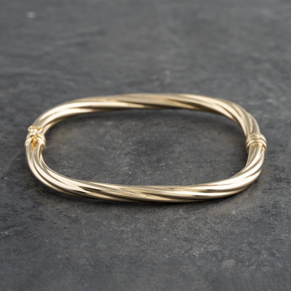 9ct Yellow Gold Twisted Standard Hinged Bangle
