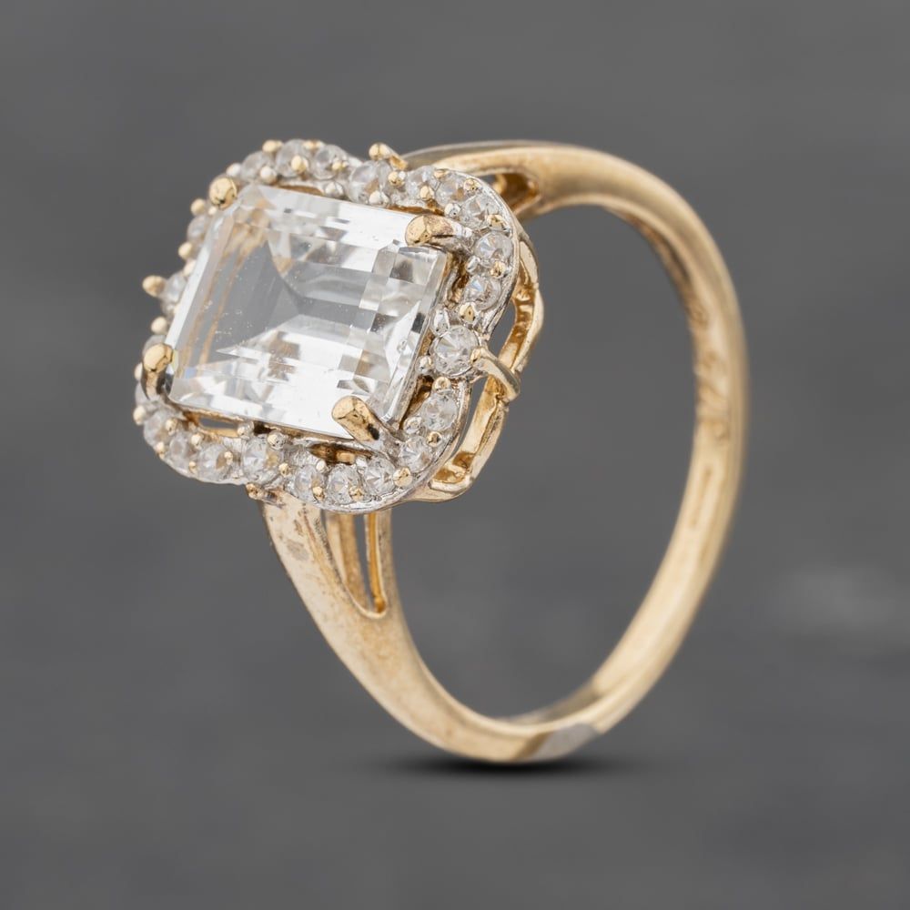 9ct Yellow Gold White Beryl & Spinels Oblong Cluster Ring
