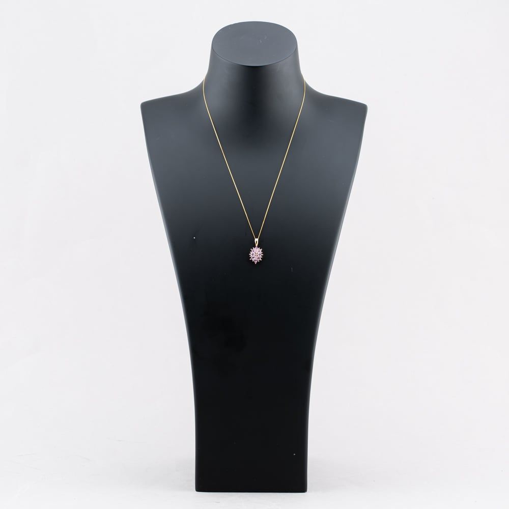 Second Hand 9ct Yellow Gold White & Pink Sapphire Cluster Pendant & 18 Inch Curb Chain 41142880