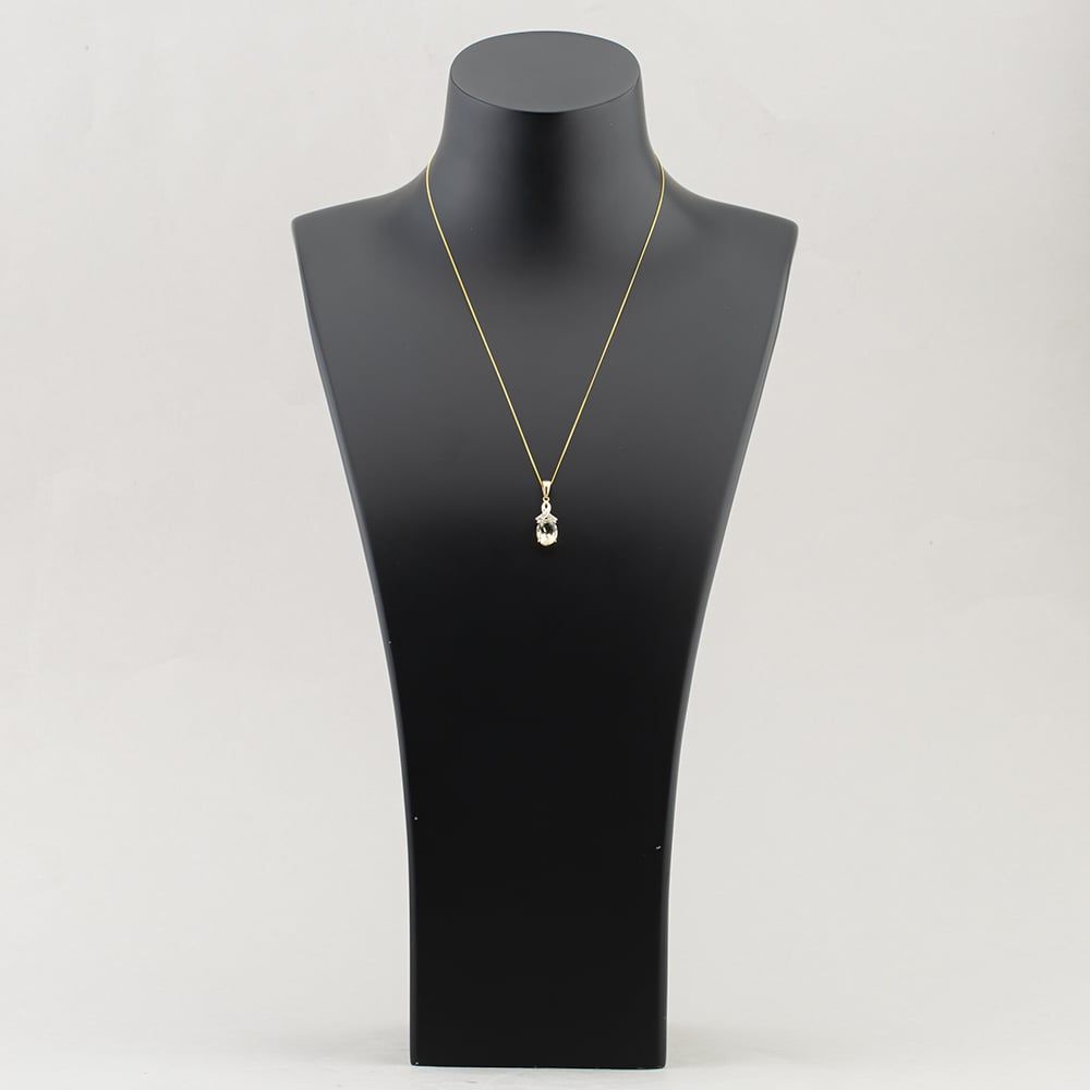 9ct Yellow Gold White Topaz & Scapolite Pendant & 18 Inch Curb Chain