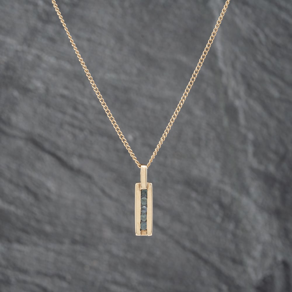 9ct Yellow Gold X5 Blue Stone Oblong Pendant & 18 Inch Curb Chain