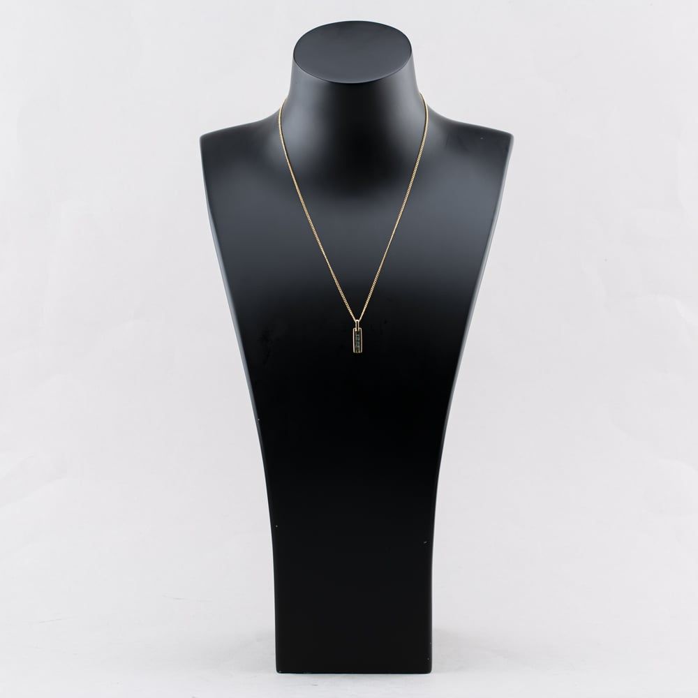 Second Hand 9ct Yellow Gold X5 Blue Stone Oblong Pendant & 18 Inch Curb Chain 41142650 Second Hand 9ct Yellow Gold X5 Blue Stone Oblong Pendant & 18 Inch Curb Chain 41142650
