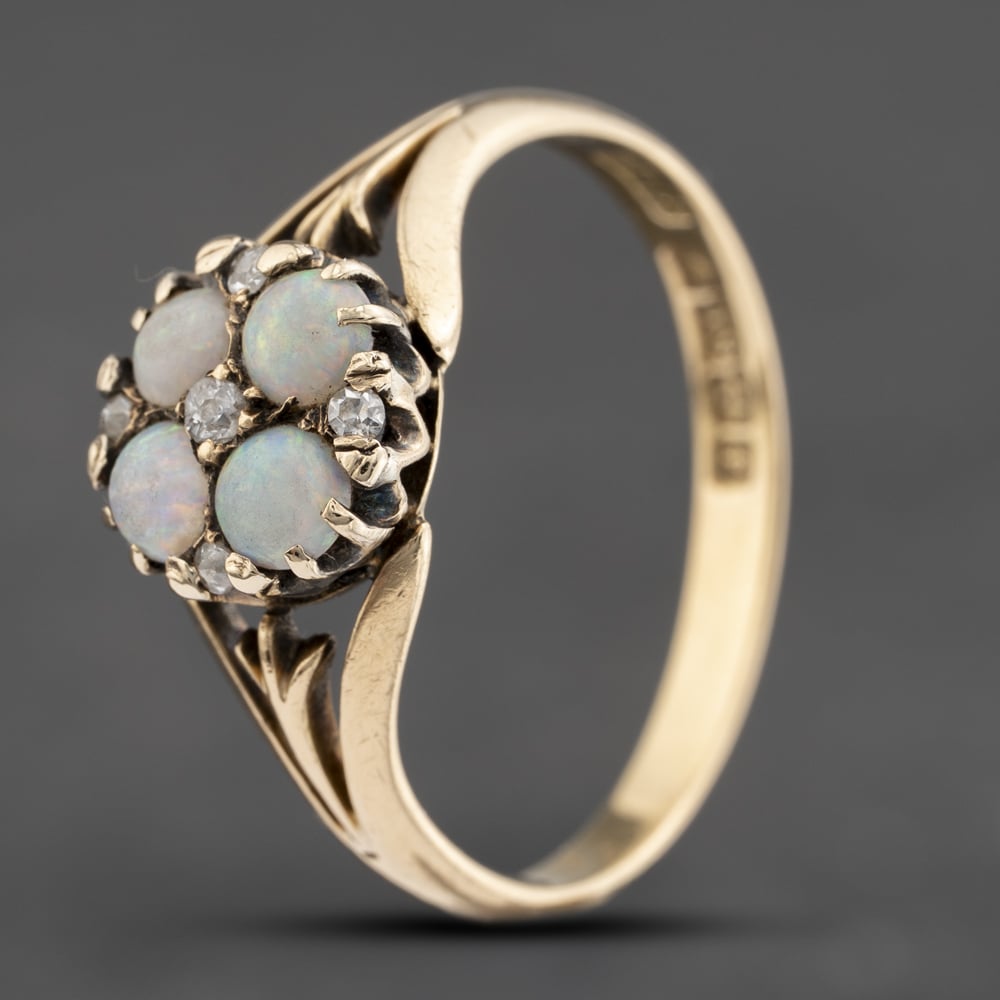 Antique 18ct Yellow Gold Opal & Diamond Cluster Ring