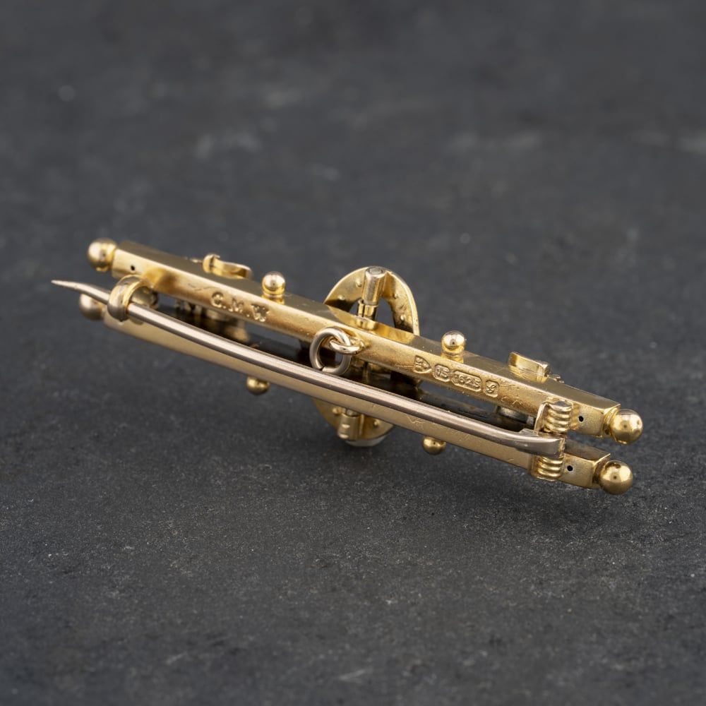 Antique 9ct Yellow Gold Seed Pearl Buckle Style Bar Brooch